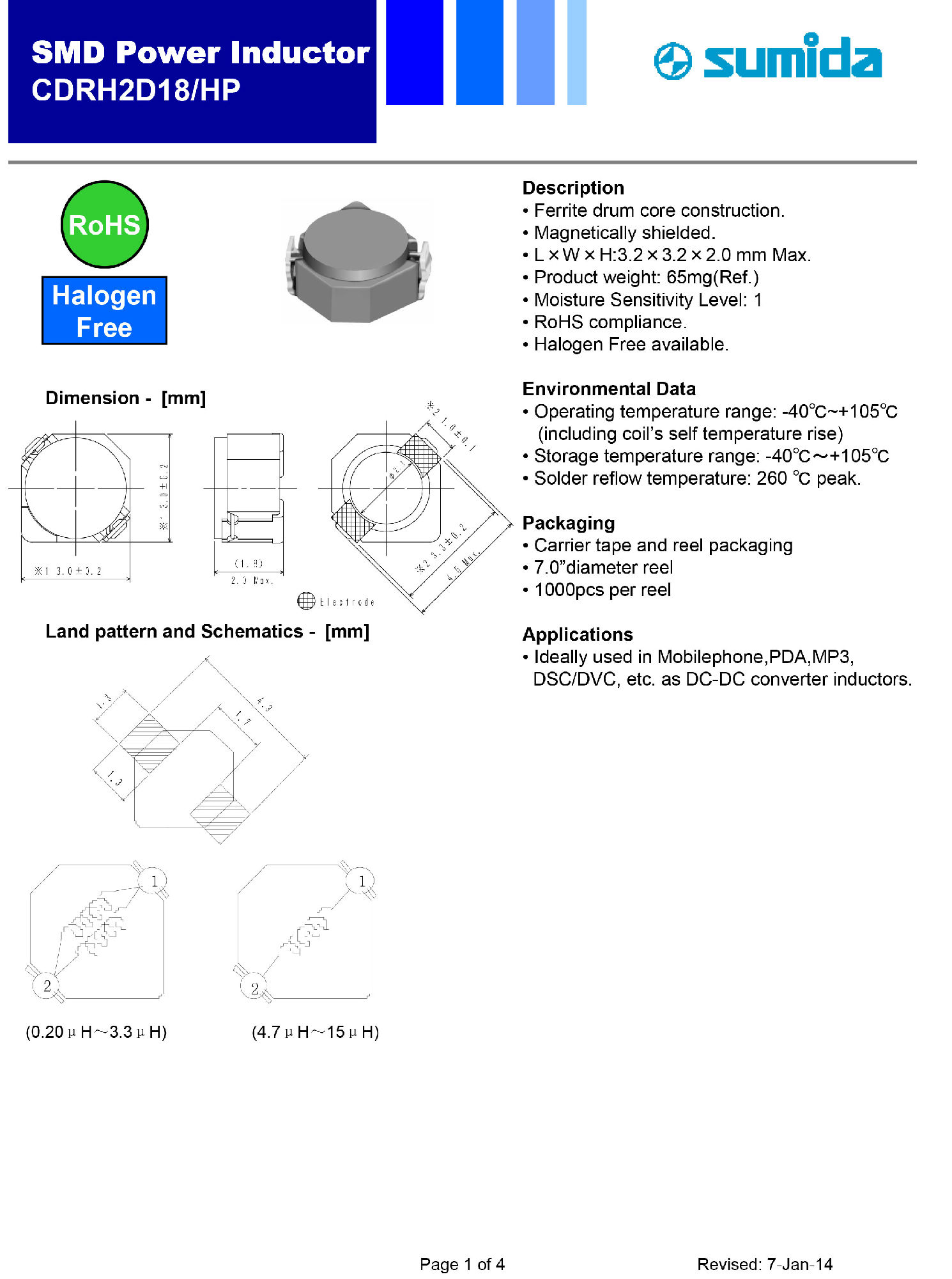 1.CDRH2D18HP磁屏蔽结构,传统构造,散热好,高功率型