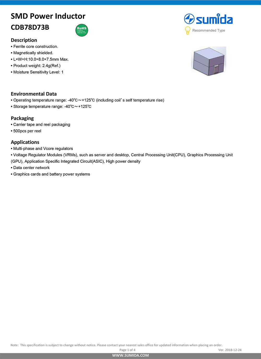 1.CDB78D73B一体成型结构,低感值、大电流,散热好