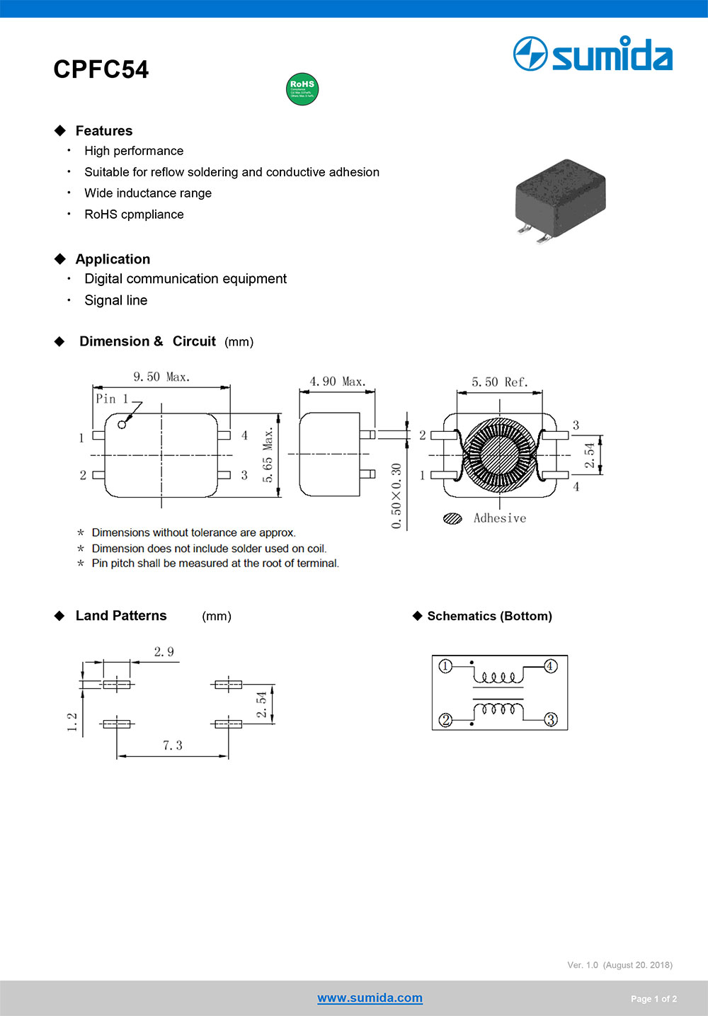 1.CPFC54磁环结构,漏感低,阻抗高、范围宽,散热好