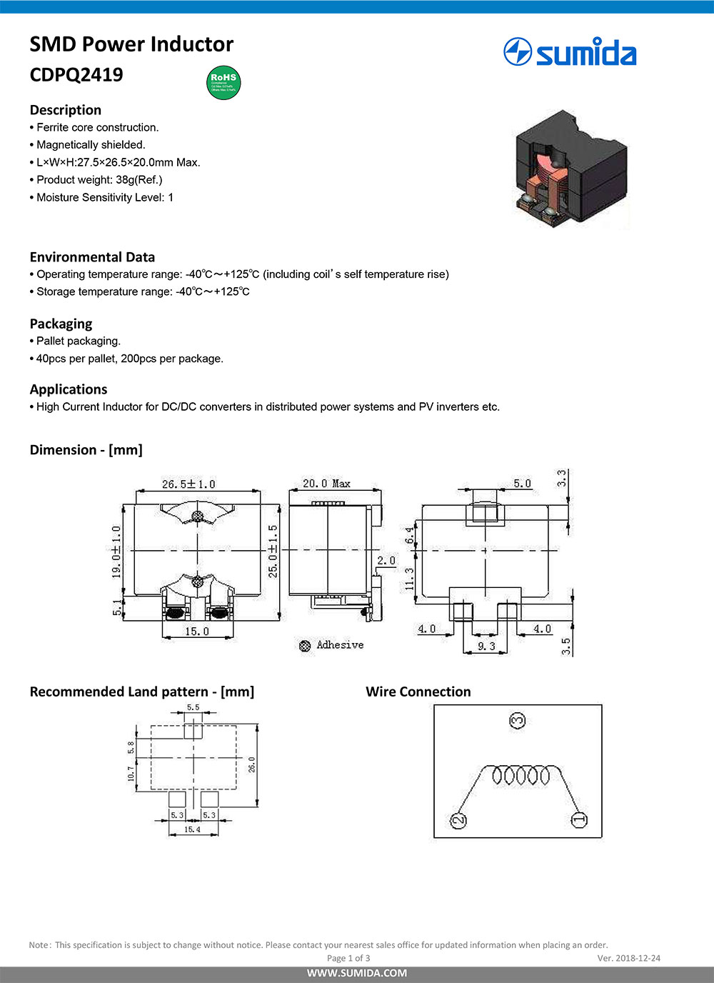 3.L*W*H--27.5*26.5*20mm 4.RoHS,最小包装300PCS