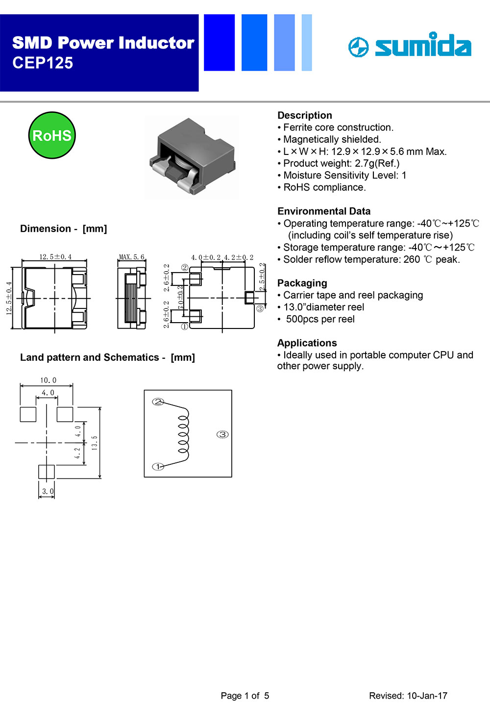 3.L*W*H--12.9*12.9*5.6mm 4.RoHS,最小包装300PCS