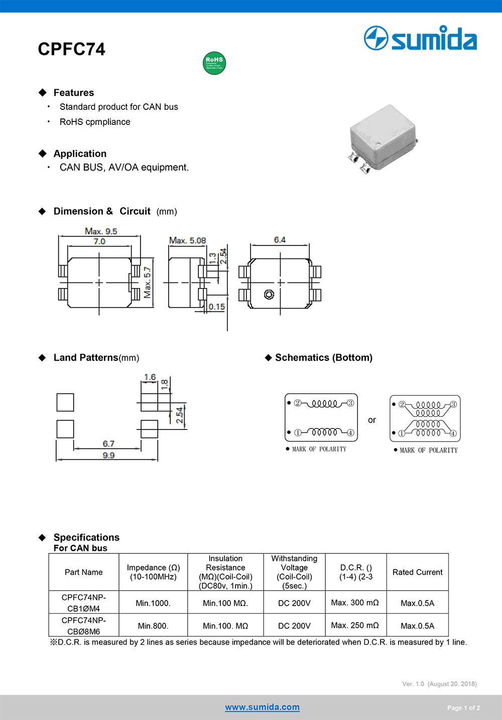 5.CPFC74广泛用于局域网工业LAN、CAN BUS的共模信号抑制,也可用于车载ADAS、ECU以及娱乐音响系统的DC电源端口的共模信号抑制等。